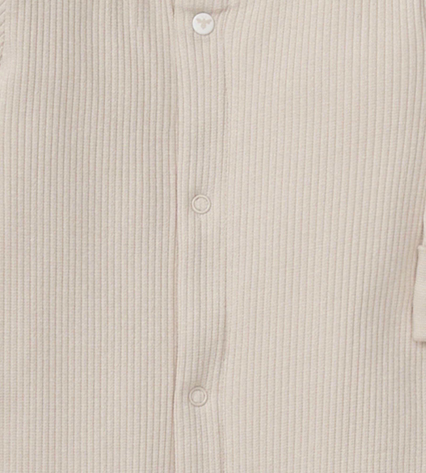 This 3-piece set includes a footed jumpsuit, rounded drool bib, and knot top hat, making it the perfect daily outfit!