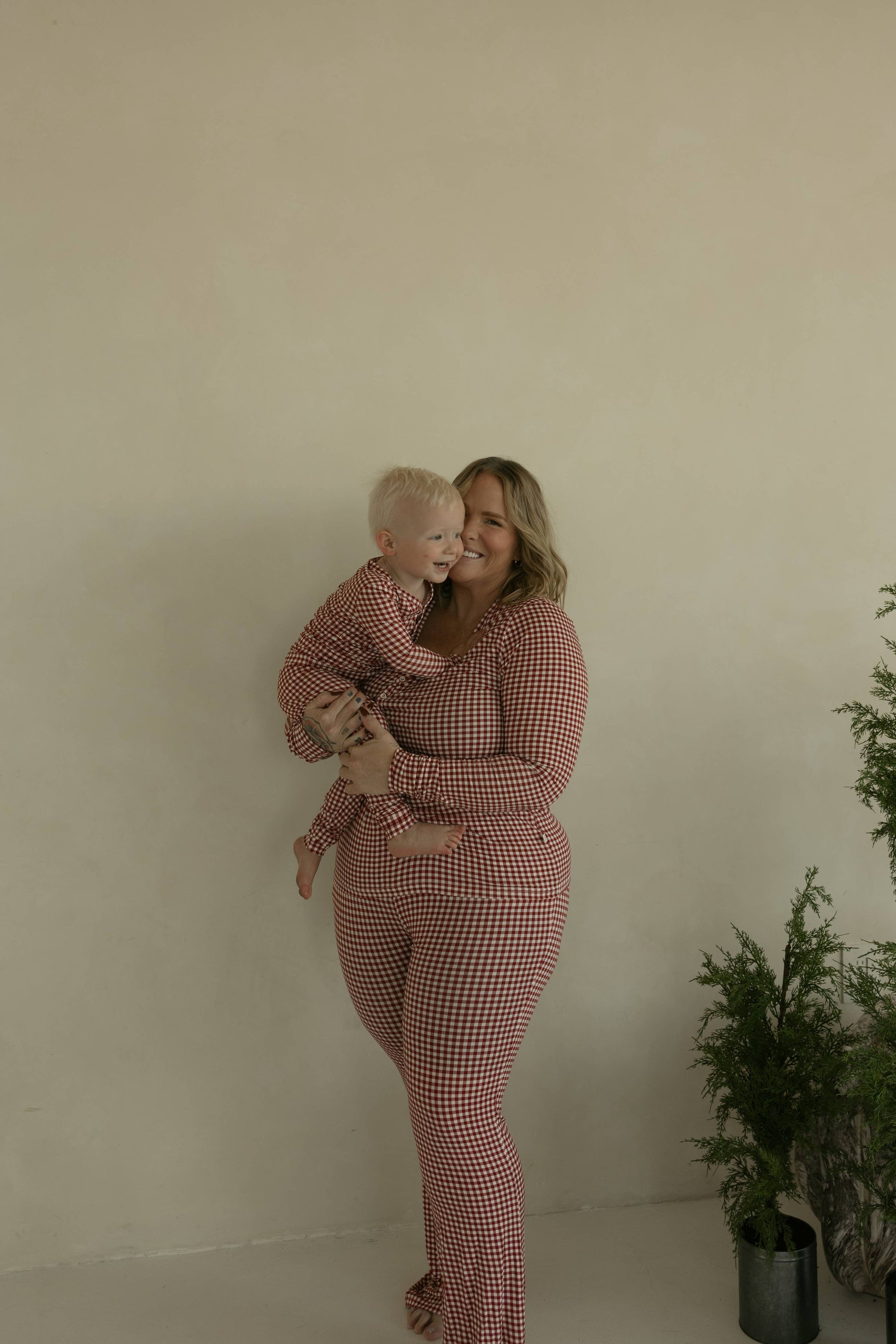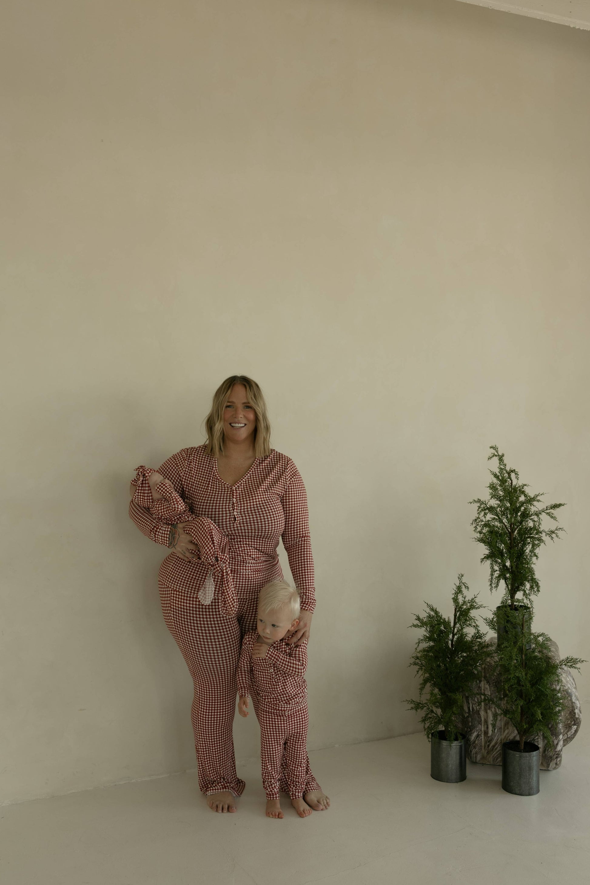Red Gingham Bamboo Set