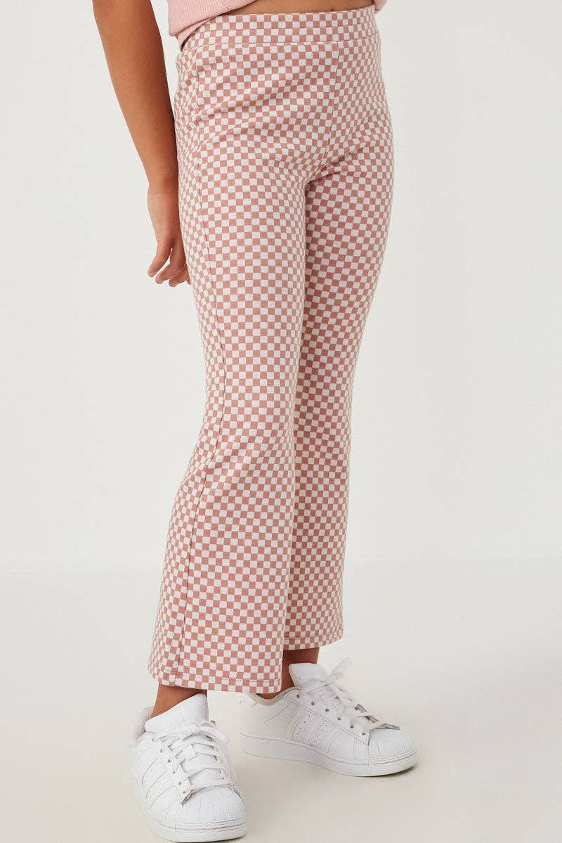 Product Details: Our Elastic Waist Checkered Straight Leg Pants Features: * Checkered Knit Fabric * Elastic Waistband * Straight Leg Cut Measurements: Size Waist Small 10.5" Medium 11.25" Large 12" X-Large 12.75" The measurements in the chart above reflect the garment laying flat. For body measurements please visit our Size Guide. Model Stats: * Height: 4'4" * Wearing Size: S Material & Care: * 98% Polyester 2% Spandex *