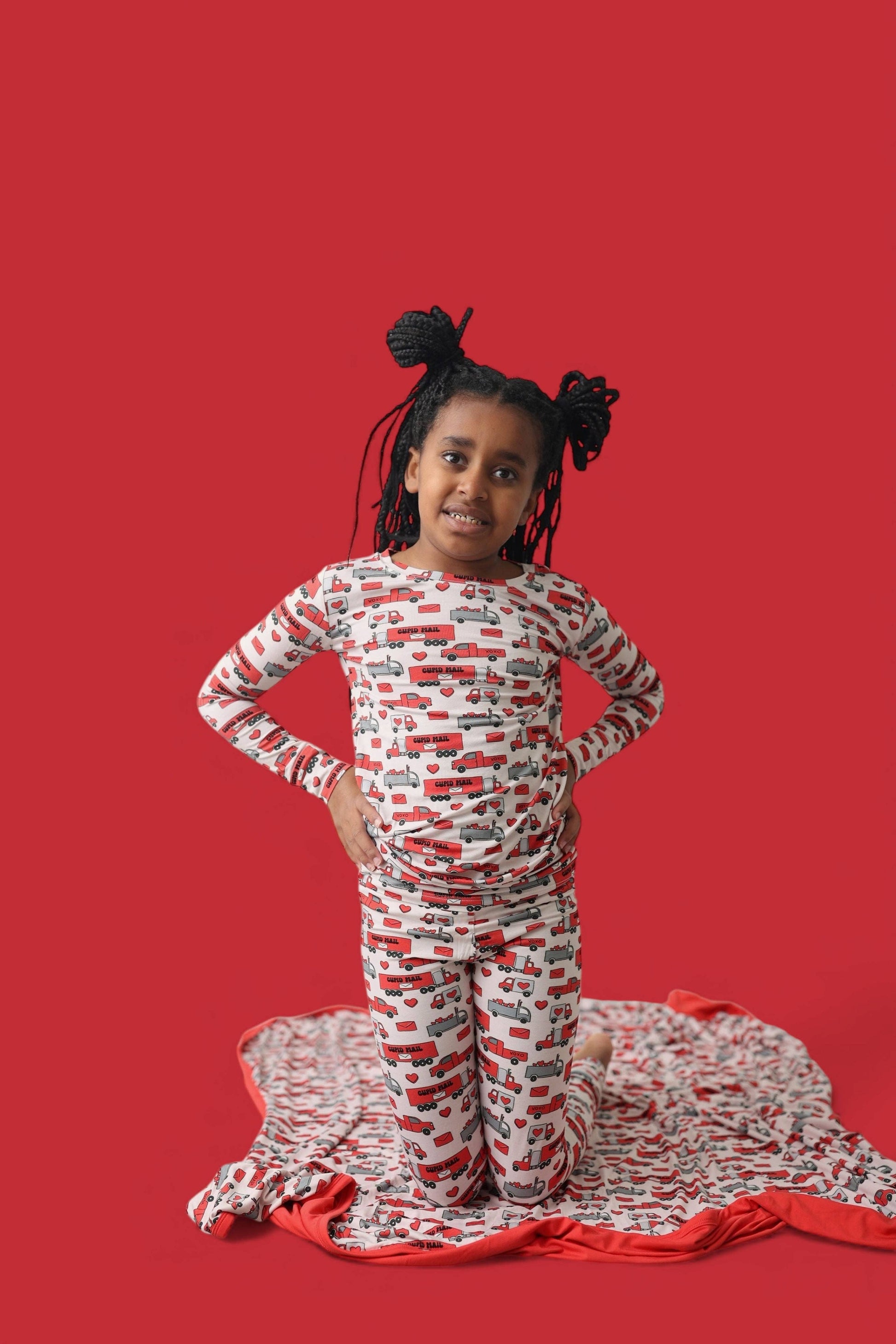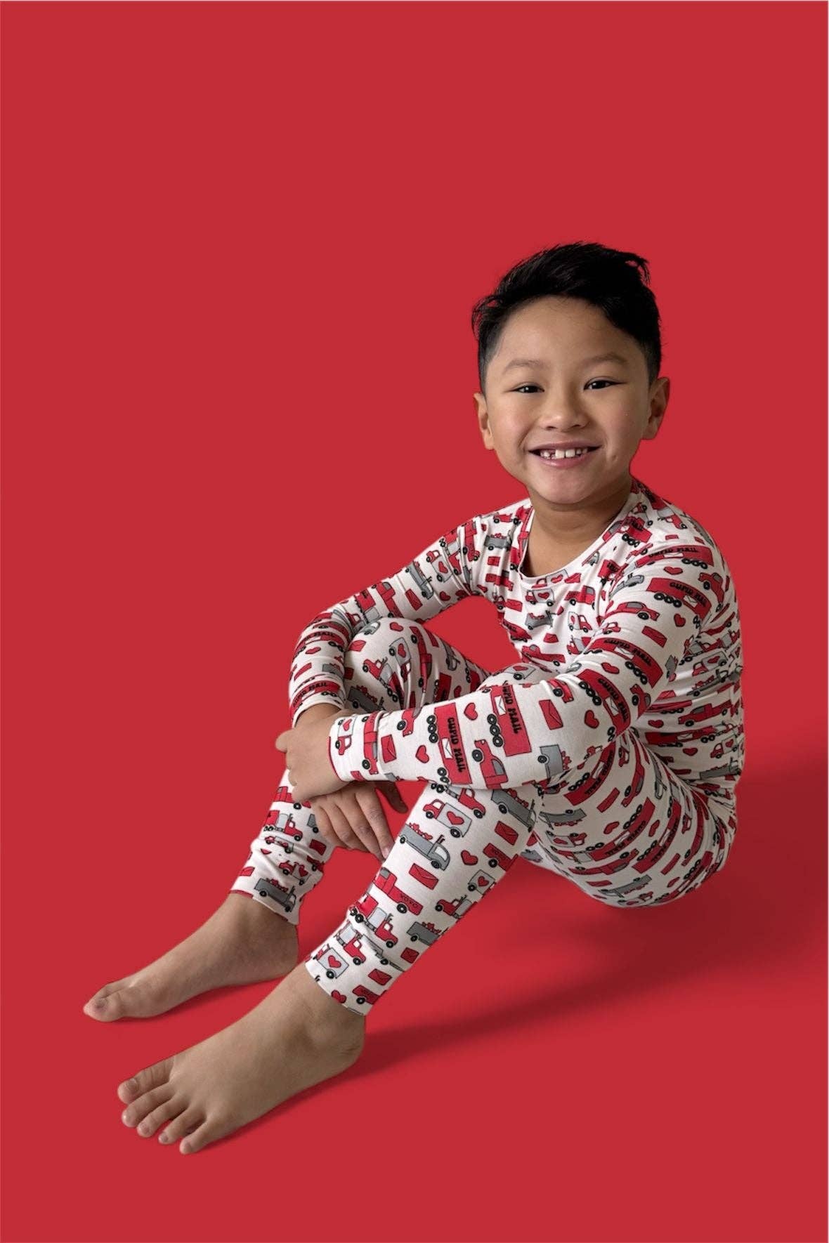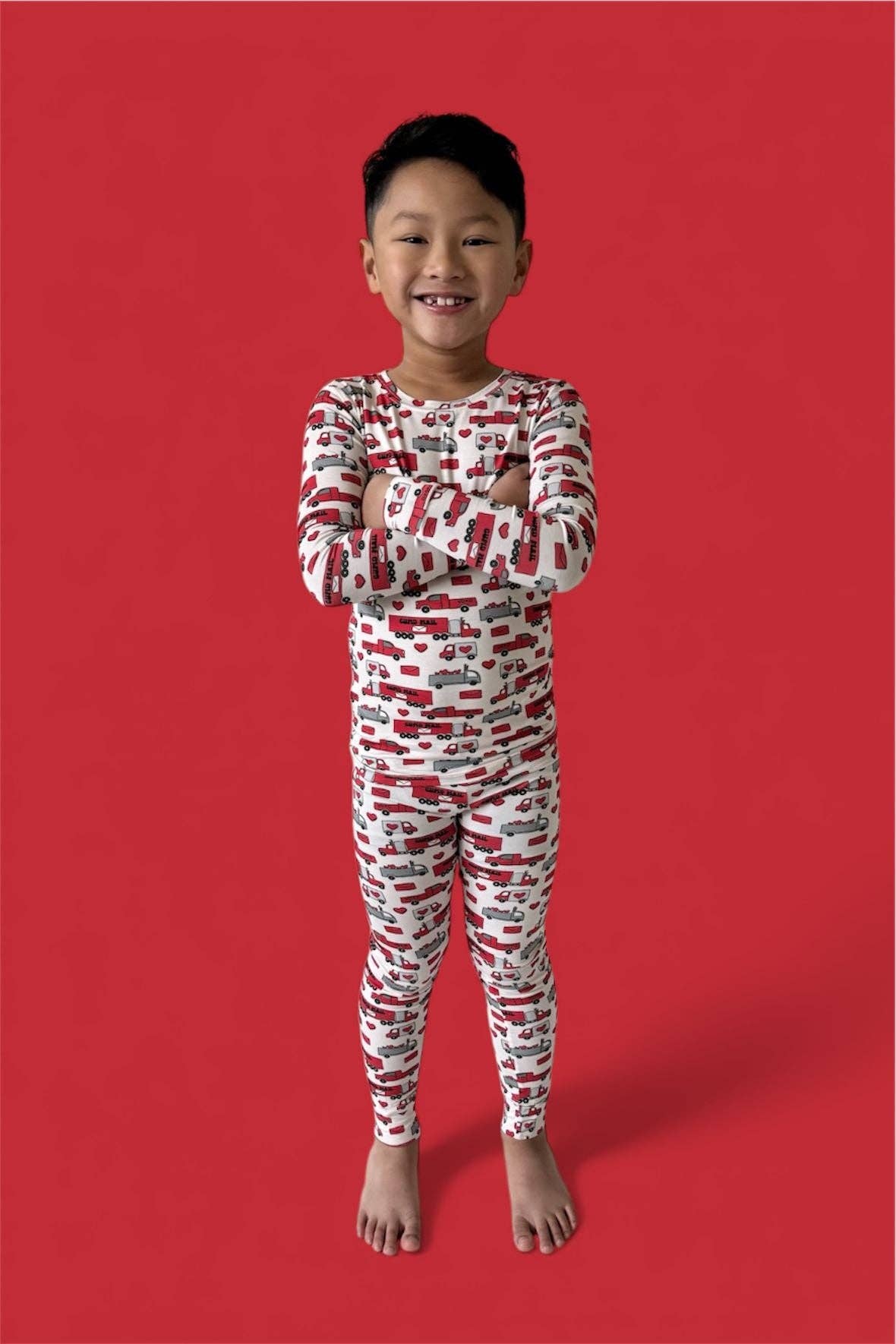 🚚❤️ Haulin’ Hearts Dream Set ❤️🚚 Love on the go, now in a two-piece! The Haulin’ Hearts Dream Set features a long sleeve top and matching pants with a cheerful print of red + gray trucks, letters, and hearts delivering “Cupid Mail.” Crafted from our signature buttery-soft bamboo fabric, this set is breathable, stretchy, and perfect for snuggles, playtime, or drifting into heart-filled dreams. * 🚚 Playful truck + hearts + “Cupid Mail” print * ❤️ Two-piece set: long sleeve top + matching pants * 💕 Buttery-soft, breathable bamboo fabric * 🌙 Gentle on sensitive skin with tagless comfort * 👯 Matching sibling styles available A cozy set built for playtime, bedtime, and delivering lots of love! Machine Wash Cold Material: 95% Bamboo form Viscose; 5% Spandex All DreamyZzz items are snug fit to meet CPSC Compliance.