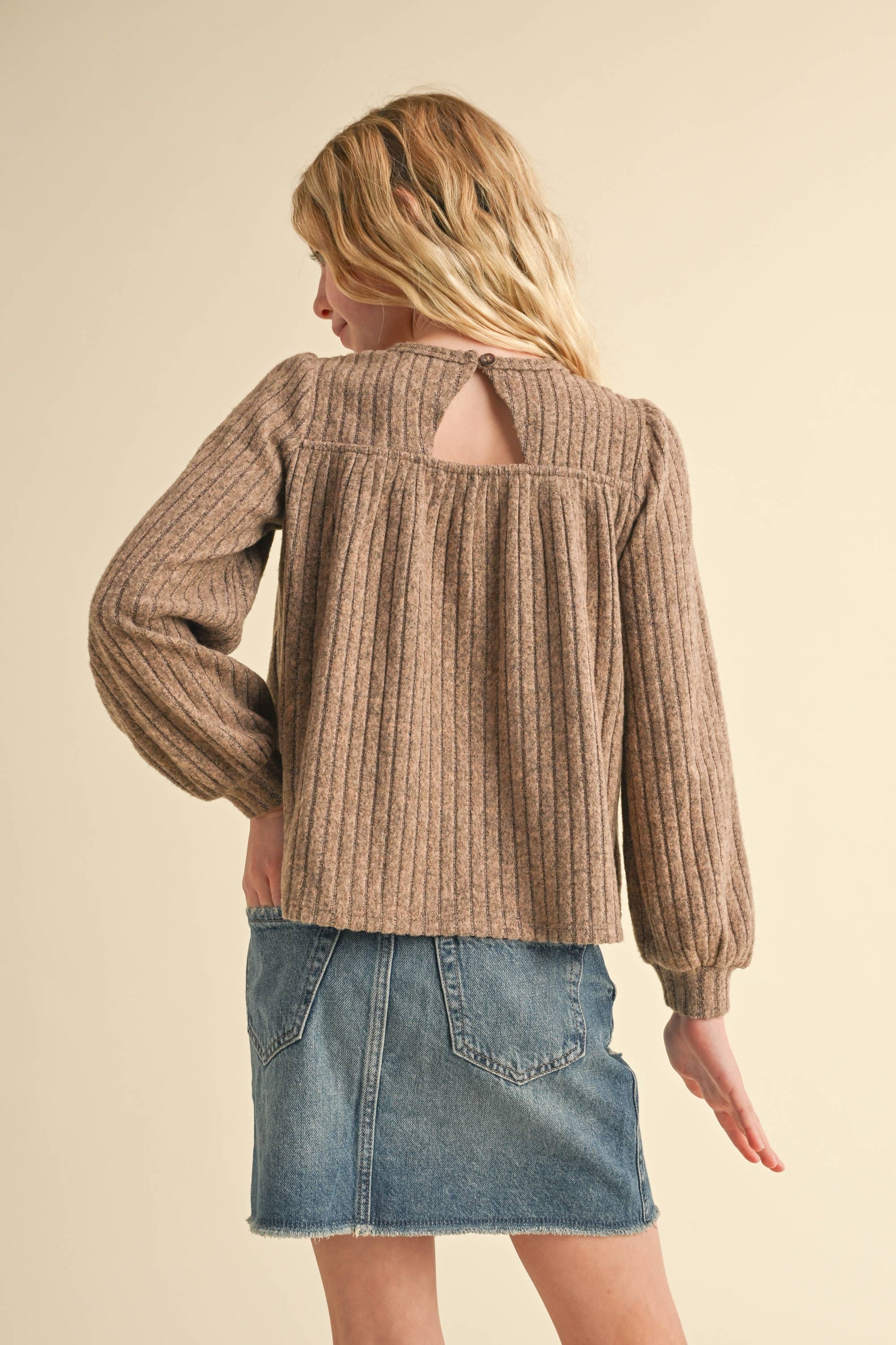 Crew Neck Long Sleeve Babydoll Sweatshirt with Back Cut Out